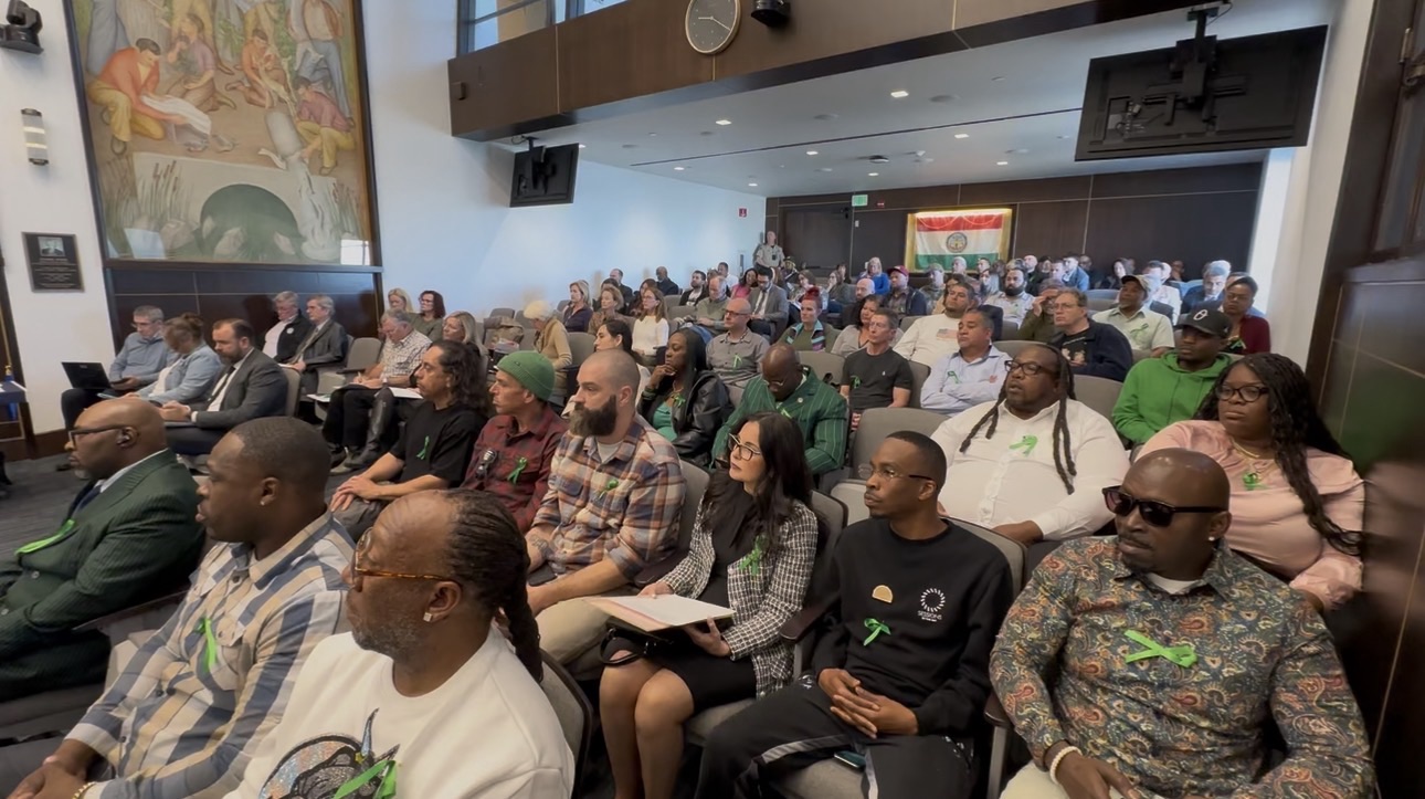 Defensores de este programa asistieron a la junta esta mañana, portando listones verdes en apoyo a la iniciativa.