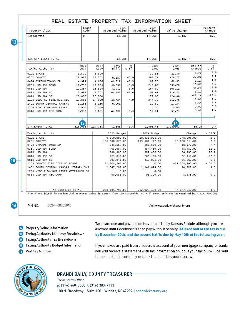 Brandi Baily, la tesorera del condado, recordó que en estas facturas se incluye información de más de 100 jurisdicciones, no únicamente del condado de Sedgwick. En la parte trasera del documento, los propietarios pueden observar un desglose detallado de cuánto contribuye su pago a cada entidad, desde distritos escolares hasta departamentos de servicios públicos.