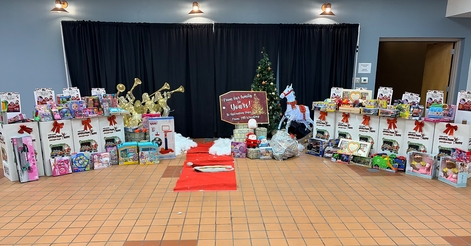 La colecta tuvo lugar del 5 al 7 de diciembre y se alineó con los eventos en vivo de TNA. Los aficionados, junto con sus familias, contribuyeron generosamente con cientos de juguetes, apoyando la misión de Operation HOPE de asistir a niños y familias que atraviesan momentos difíciles en El Paso, Las Cruces y comunidades cercanas.